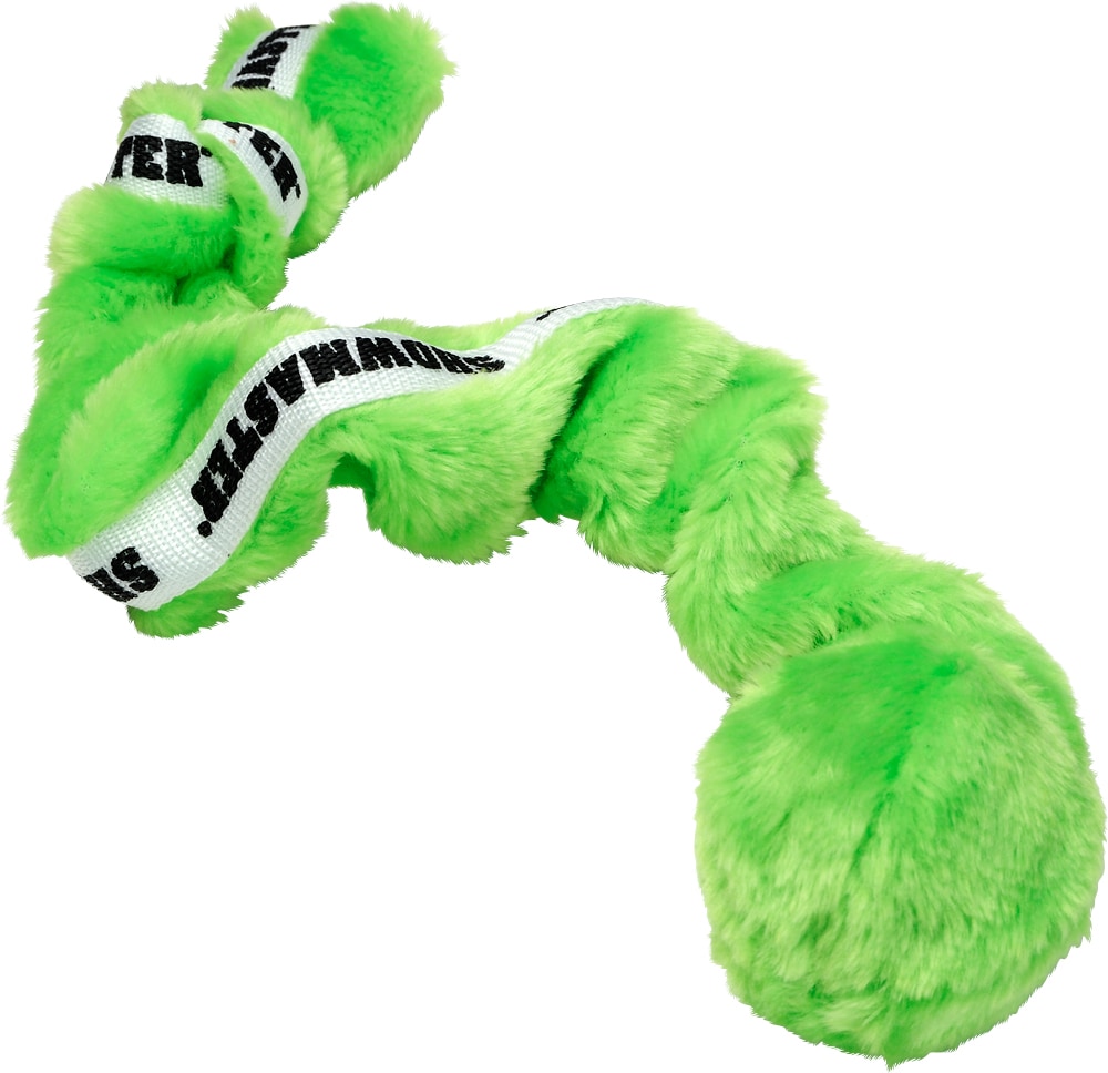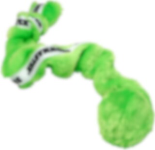 Hondenspeelgoed van nepbont met aan de ene kant een bal en aan de andere kant een pieper. 60 cm.