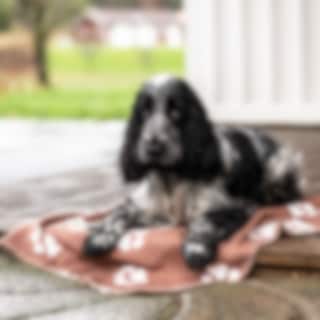 Hondendeken van fleece met pootafdrukken. Past perfect voor hondenbench, hondenbedje, sofa of het favoriete plekje van uw hond. Afmetingen 100 x 70 cm.