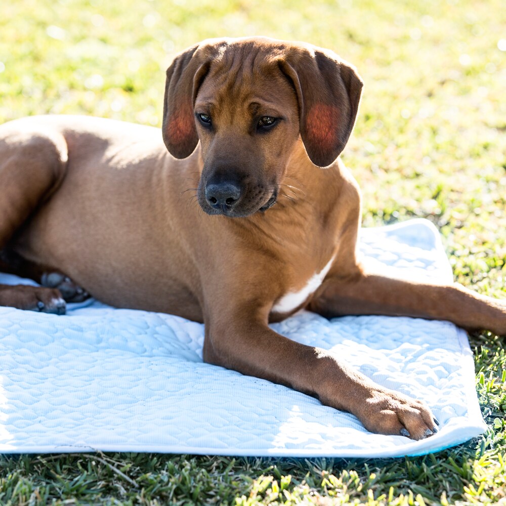 Dunne polyester matras met verweven verkoelende componenten voor een verfrissend effect. Mag niet doorweekt zijn. 100 cm x 70 cm.