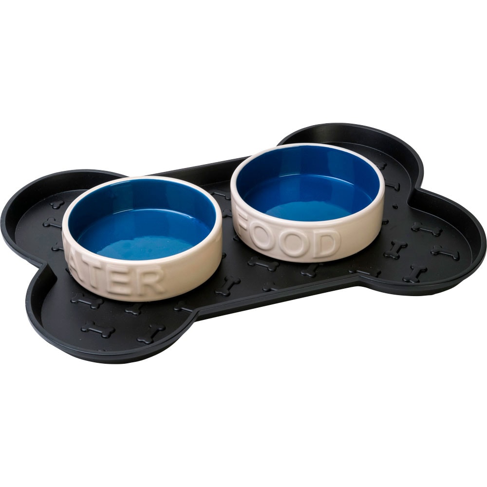 Voederbakonderlegger van kunststof met rand. Afmetingen: 46,5 x 33 x 2 cm.