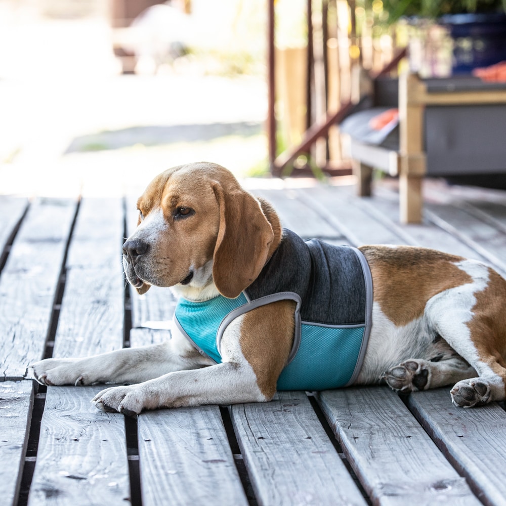 Help uw viervoeter in de zomerse hitte! Dit koelvest biedt verlichting bij warm zonnig weer door de borst van uw hond te koelen. Week het vest grondig in koud water en wring het uit totdat het niet meer druppelt. Het verkoelende effect wordt gecreëerd door het water dat verdampt. De duur van het verkoelende effect is afhankelijk van de omgevingstemperatuur, de luchtVocht en de grootte van uw hond. De koeling neemt geleidelijk af naarmate het vest droogt, dus laat uw hond het vest nooit onbeheerd dragen. Het vest heeft een ritssluiting aan de achterkant.