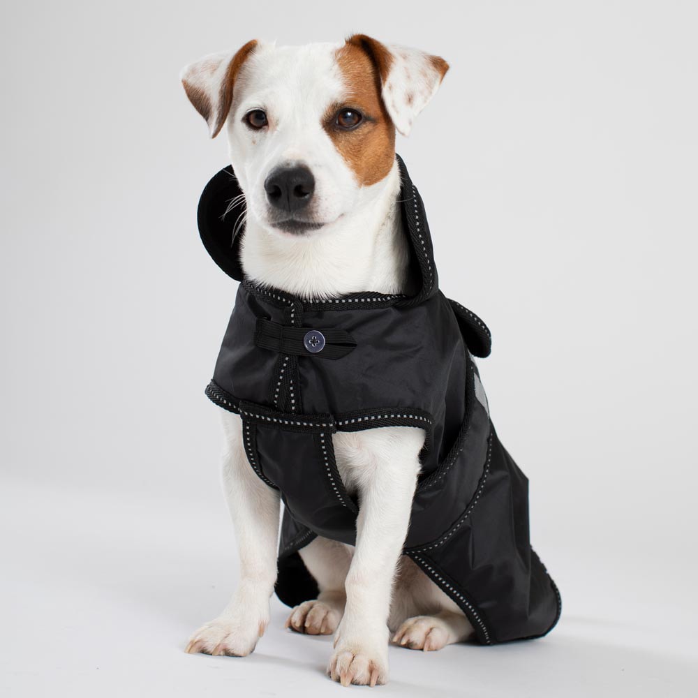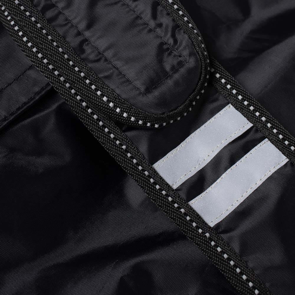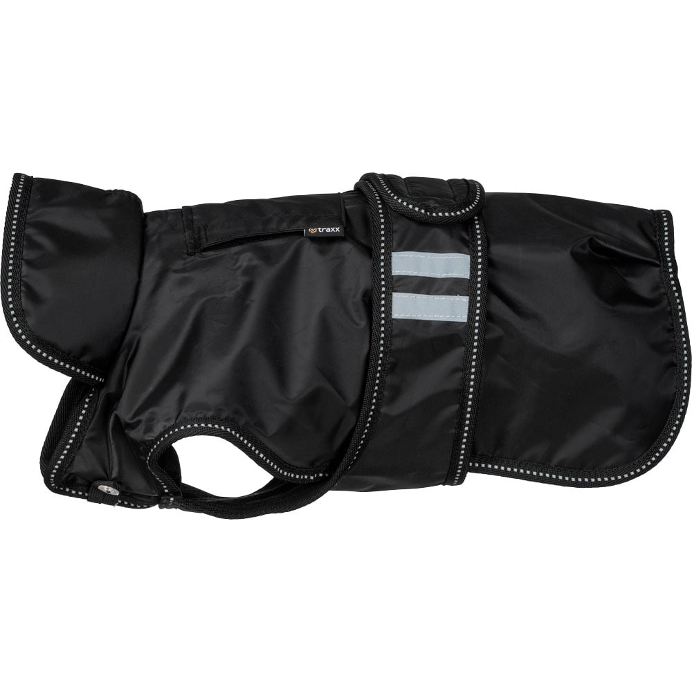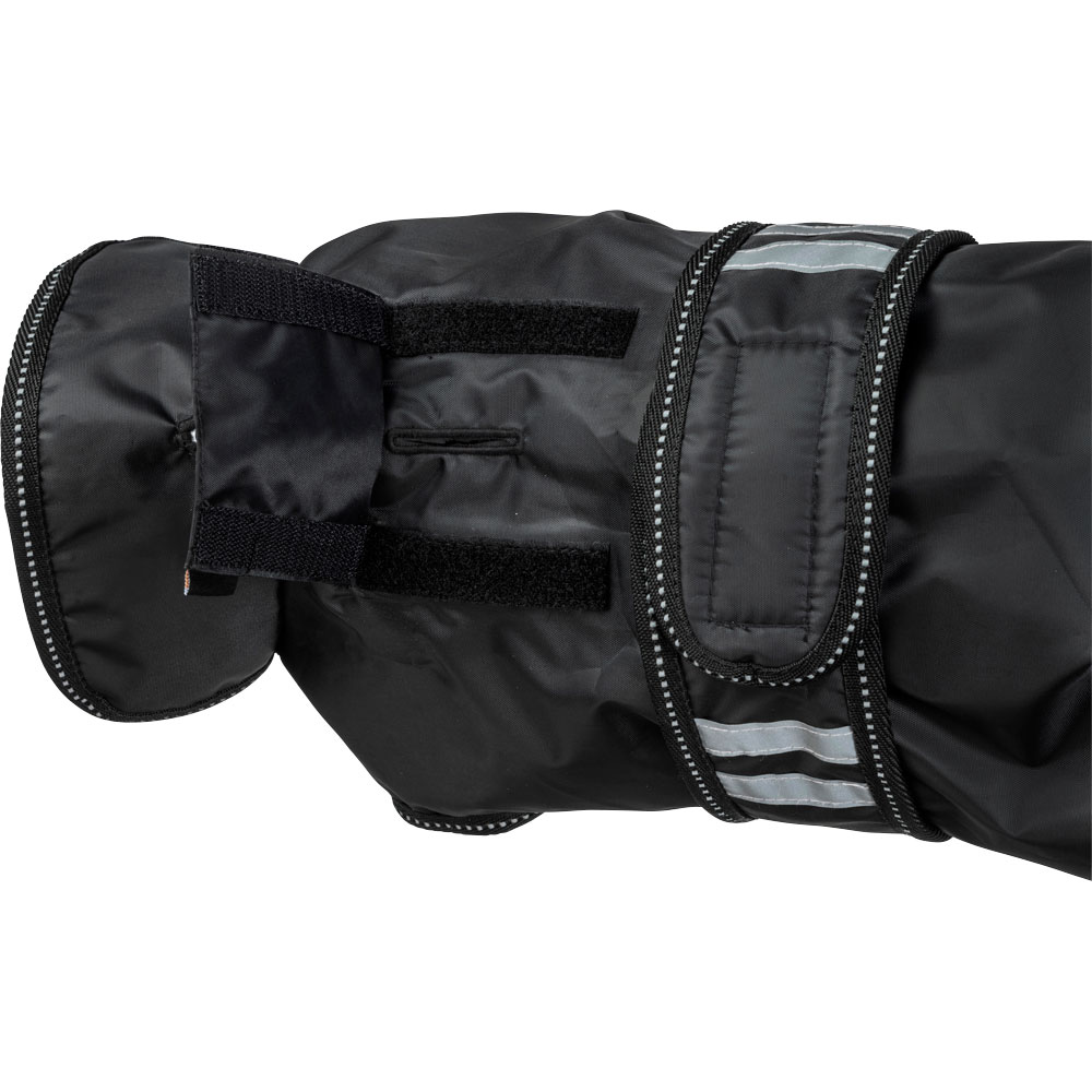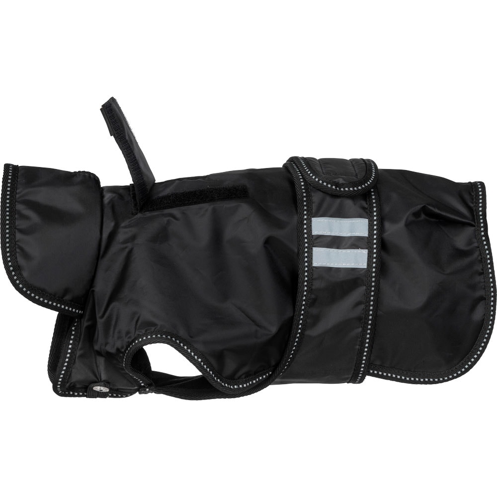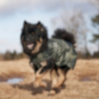 Flexibele regendeken met een lichtgewicht voering van warme fleece. Waterdichte 210D polyester buitenstof met 3000 mm waterkolom om uw hond droog te houden tijdens de hele wandeling en 3000 MVT ademend vermogen om condensvorming onder de deken te voorkome