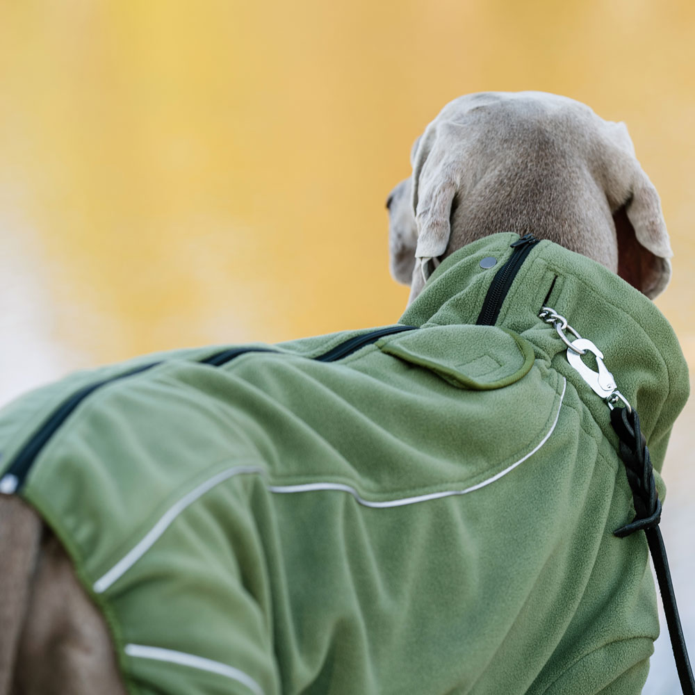 Zachte, comfortabele hondenjas van flexibele, warme fleece. Absorbeert en voert vocht af, zodat uw hond sneller droog wordt als hij wordt gedragen als uw hond vochtig is. Ideaal als extra laag onder onze Evo Rain Overall bij koud weer. Elastisch trekkoord rond nek en buik zorgen voor een optimale pasvorm, elastische manchetten aan de uiteinden van de pijpen houden de jas stevig op zijn plaats. Gat voor halsband en harnas voor verschillende riemopties. Reflecterende details verbeteren de zichtbaarheid in het donker.