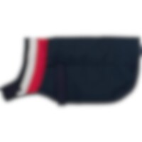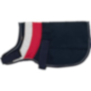 Dekje met warme voering van 600D polyester met 150 g polyfill vulling. Quiltpatroon met strepen zodat het goed aansluit en comfortabel om de hond zit. Verstelbaar aan de voorkant en rond de borst met klittenband voor goede afstelmogelijkheden. Met reflect