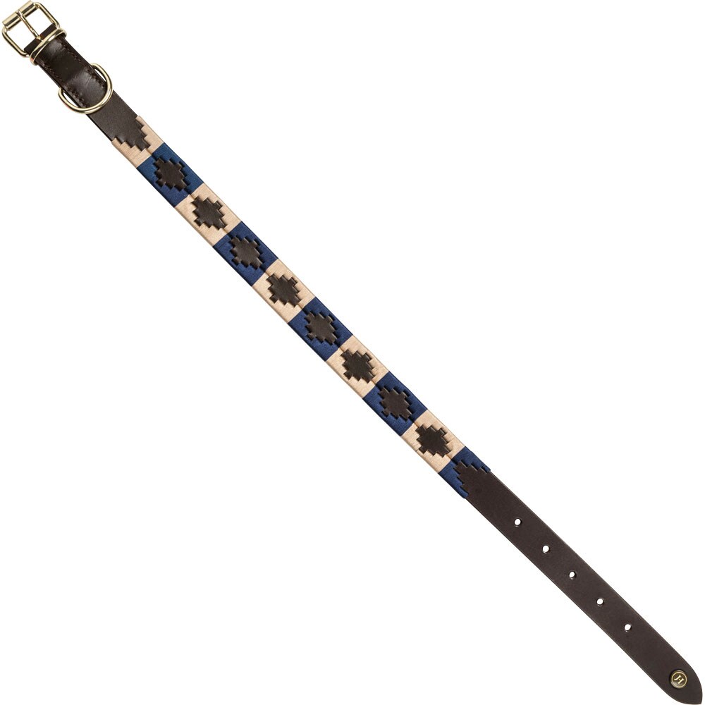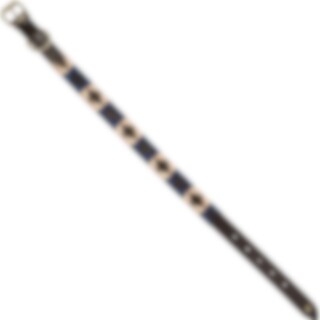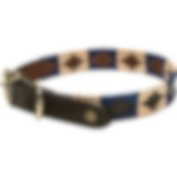 Hondenhalsband van soepel en slijtvast leer dat na verloop van tijd nog zachter en comfortabeler wordt. Versierd met klassiek gedraaid patroon van gewaxte draad. Gesp en d-ring van messing.