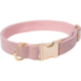 Verstelbare halsband van ribfluweel met polyesterversterking aan de binnenzijde. Maat S: 30-42 cm, breedte 2 cm, M: 40-55 cm, breedte 2,5 cm, L: 53-65 cm, breedte 2,5 cm.