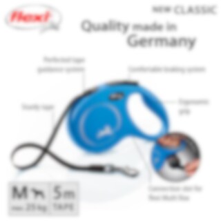 Rollijn met het gepatenteerde remsysteem van FLEXI. 5 m lange riem voor honden tot 25 kg. Ergonomisch ontwerp met comfortabel remsysteem.