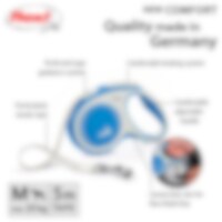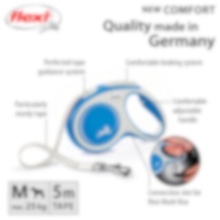 Rollijn met het gepatenteerde remsysteem van FLEXI. 5 m lange riem voor honden tot 25 kg. Met verstelbaar handgreepsysteem.