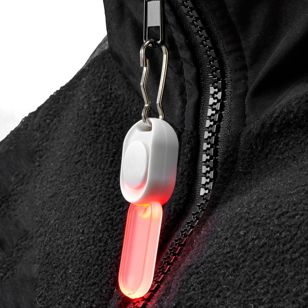 Kleine praktische ledlamp die je zichtbaar maakt in het donker. Gemakkelijk te bevestigen aan jassen, tassen of broeken. Verkrijgbaar in verschillende kleuren. Ook ideaal om aan een hondenriem of iets dergelijks te bevestigen. Werkt op twee CR1220-batteri