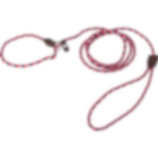 Retrieverriem van glad, rond gevlochten polyester. Traploos verstelbaar met roestvrijstalen stopring en stops, zodat je de halsband kunt aanpassen aan de afmetingen van je hond. Klein genoeg om in een jas- of broekzak te passen. Lengte: 180 cm Ø: 8 mm