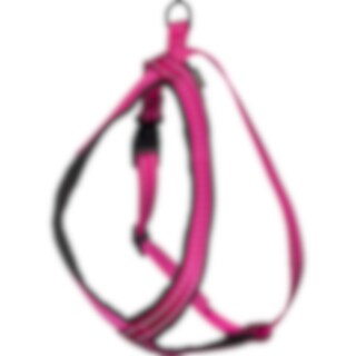 Nylon tuigje met reflecterende details. Zachte neopreen voering op de borst en tussen de benen. Verstelbaar over de buik.