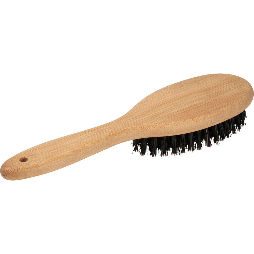 Borstel met rug en handvat van milieuvriendelijk bamboe. Echt varkenshaar houdt de vacht van uw paard zacht en glanzend zonder statische elektriciteit te creëren. Geschikt voor zowel lang als kort haar. Maat: 22 x 6 cm.