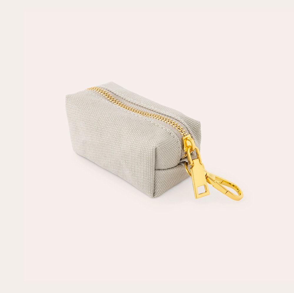 Stijlvolle canvas poepzakhouder met ritssluiting. Geleverd met zakjes. Een praktische en stijlvolle oplossing voor alle wandelingen met j hond. 13 x 9 cm.
