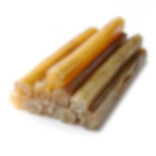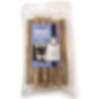 Gecomprimeerde kauwstick van ongelooide huid. 20 x 2 cm.