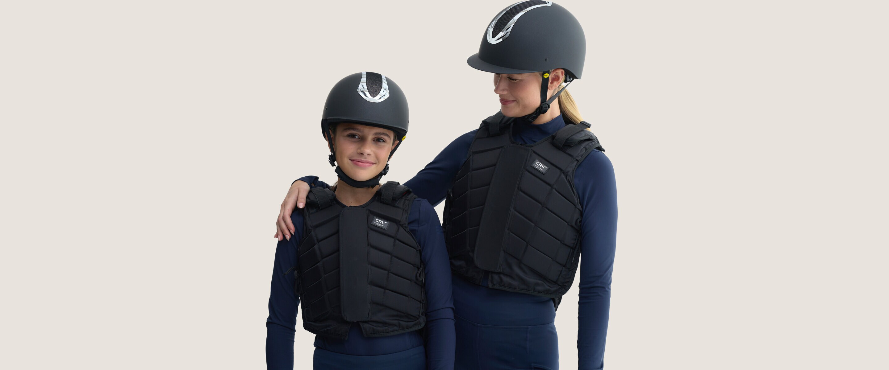 Wanneer je je lichaamsbeschermer test, kun je het beste een dunne trui dragen, zodat de beschermer zo dicht mogelijk op je lichaam zit. De beschermer moet het borstbeen en de sleutelbeenderen bedekken, waarbij het voorste gedeelte twee tot drie centimeter onder de onderste rib uitsteekt, ongeveer twee vingers breed. Je moet je normaal voorover kunnen buigen. Het achterste gedeelte moet alles bedekken, van de atlas tot aan het staartbeen. Ga eerst in het zadel zitten voordat je een beschermer koopt. De beschermer mag niet te lang zijn, omdat die anders ergens achter kan blijven haken of omhoog kruipt als je in het zadel gaat zitten. Dat maakt het paardrijden ongemakkelijk en onveilig.