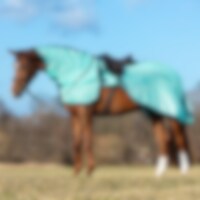 Rijdeken van fijnmazig polyesternet dat het paard beschermt tegen vliegen tijdens het rijden. Contourvolgende pasvorm dat rond het zadel past en ruimte biedt voor beugels. Afneembare halsdeken met klittenbandsluiting en riempjes om aan de trens te bevestigen. Geweven Fairfield-band langs de manen en rug.