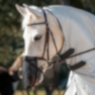 Neusnet om de snuit en neusgaten te beschermen tegen vliegen en enige bescherming tegen de zon te bieden. Te bevestigen aan halster of hoofdstel met vier klittenbandsluitingen.