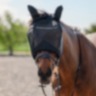 Comfortabele vliegenkap die eenvoudig met klittenband aan het hoofdstel bevestigd wordt. Stevig nylon gaas over de ogen beschermt je paard tegen vliegen en insecten, zacht rekbaar polyester gaas dat ademt beschermt de gevoelige oren zonder dat het te warm wordt. Gaten voor vliegenmasker zodat het masker niet te strak gaat zitten.