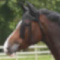 Beschermt zowel ogen als oren. Kan zonder halster gebruikt worden. Verstelbaar onder de wang met klittenband, elastische band aan één kant. S = Pony, L = Full.