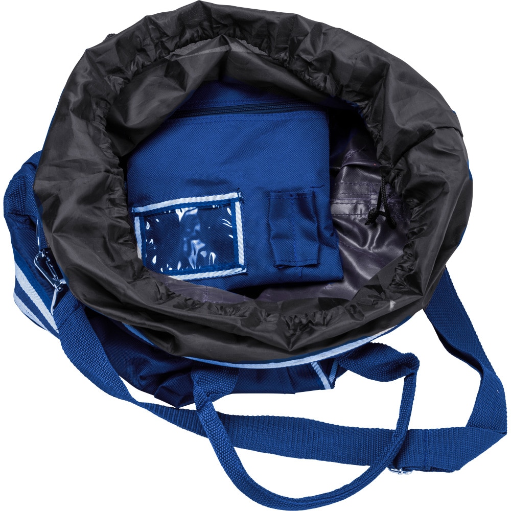 Rijtas van polyester met verstelbare schouderband. Flap met rits om te voorkomen dat de struiken eruit vallen. Zakken aan de buitenkant met ruimte voor kleine voorwerpen. Binnenzak met rits. Ca. 38 cm doorsnede. Hoogte: Ca. 27 cm.