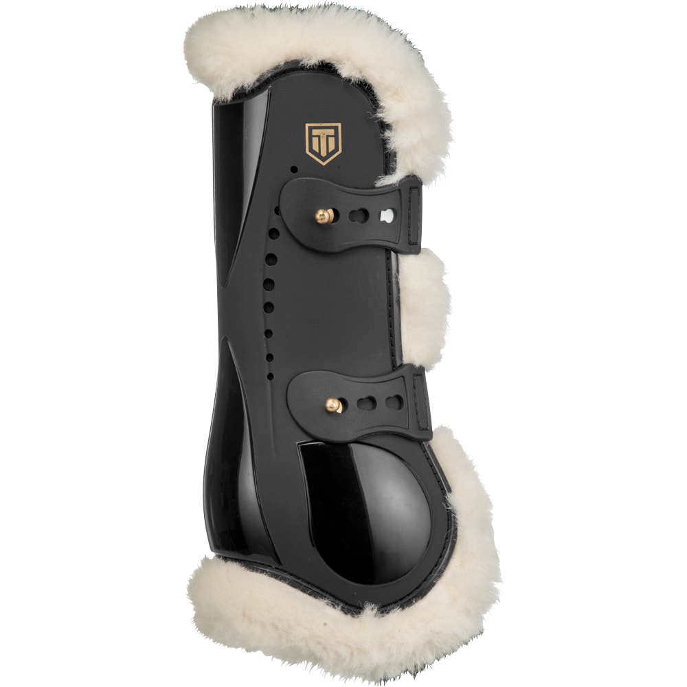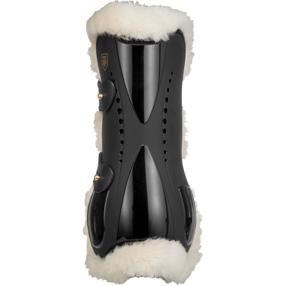 Peesbeschermers met sterke kunststof schaal. Echte Nieuw-Zeelandse wollen voering, ventilatiegaten om een optimale temperatuur rond het been te behouden. De lamswol absorbeert schokken, voorkomt schuren, vermindert druk, zorgt voor ventilatie en is volledig machinewasbaar op wolprogramma. Hoogte schaal rug maat S: 18,5 cm, maat M: 21 cm.