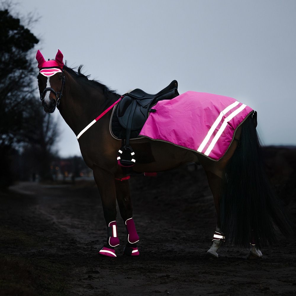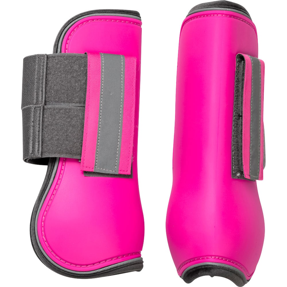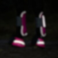 Beenbescherming achter met sterk kunststof omhulsel dat beschermt tegen stoten. Gevoerd met neopreen voor extra comfort. Sluiting met elastisch klittenband. Reflecterende details op de knoop en rondom het omhulsel.