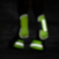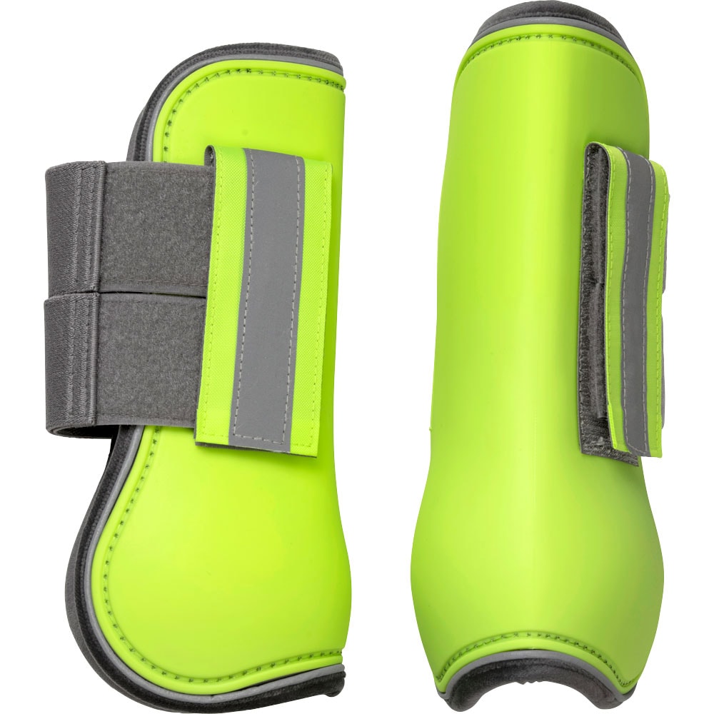 Beenbescherming achter met sterk kunststof omhulsel dat beschermt tegen stoten. Gevoerd met neopreen voor extra comfort. Sluiting met elastisch klittenband. Reflecterende details op de knoop en rondom het omhulsel.