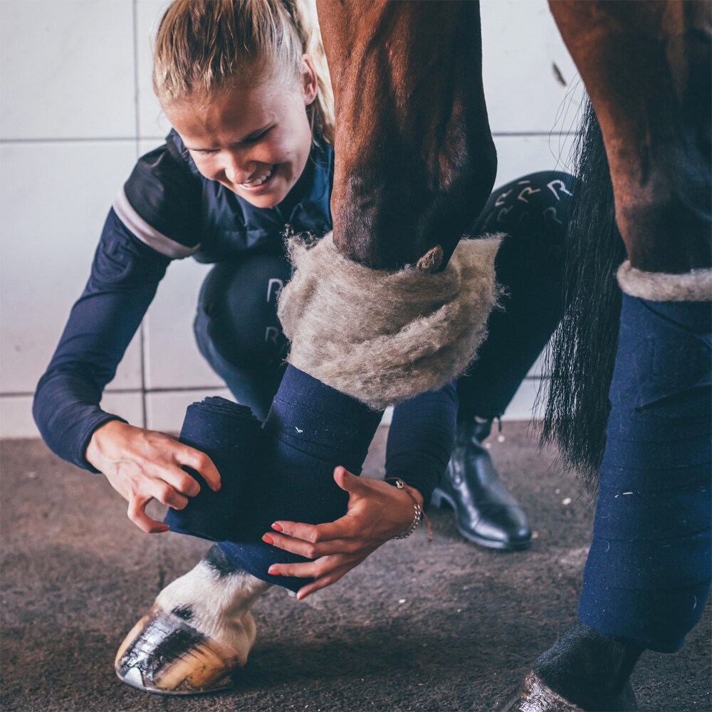 Woolpad verbandkussens van 100% biologische wol. Voor een effectieve behandeling van huidklachten zoals modderkoorts, schaafwonden en eczeem. Kan ook worden gebruikt om herstel na hard werken te bevorderen en blessures te voorkomen. Woolpad is gemaakt van ongewassen wol met natuurlijke lanoline, wat het genezingsproces van het paard bevordert. Behalve dat het de huid helpt sneller te genezen, stimuleert lanoline de bloedsomloop en absorbeert het vocht, waardoor zwelling en eventuele infecties worden verminderd. Gebruik de Woolpad als een gewone stalmat en wikkel er een verband overheen, bijvoorbeeld een fleeceverband. Zorg ervoor dat het verband het hele Woolpad bedekt en laat het een nacht intrekken. Zorg ervoor dat de wol droog is en wikkel het op droge benen voor het beste resultaat. Het wordt aanbevolen om Woolpads 2-4 weken te gebruiken voor een optimaal resultaat. Na ongeveer een maand dagelijks gebruik, wanneer de lanoline in de pad zijn effect begint te verliezen, vervangt u deze door een nieuwe pad. De wol wordt minimaal 8 dagen met warmte behandeld om elk infectierisico te elimineren. Afmeting 40x50cm. Kan op de gewenste maat worden gesneden.