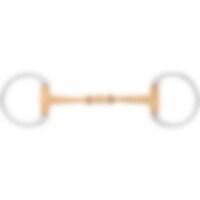 Driedelig messing egg-bit met ronde ringen van roestvrij staal. Een egg-bit zorgt voor stabiliteit en voorkomt dat de mondhoek van het paard bekneld raakt. Een bit met een goede pasvorm en een kleiner middendeel dat goed in de paardenmond past. Dikte 13