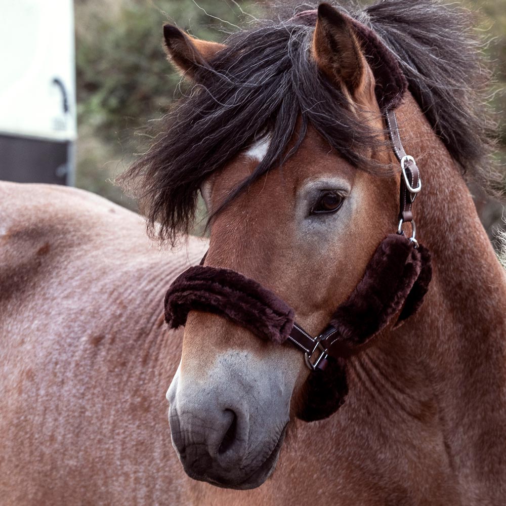 Hoofdstelhoezenset van Italiaanse nertsfleece. Bedekt alle delen van het hoofdstel.