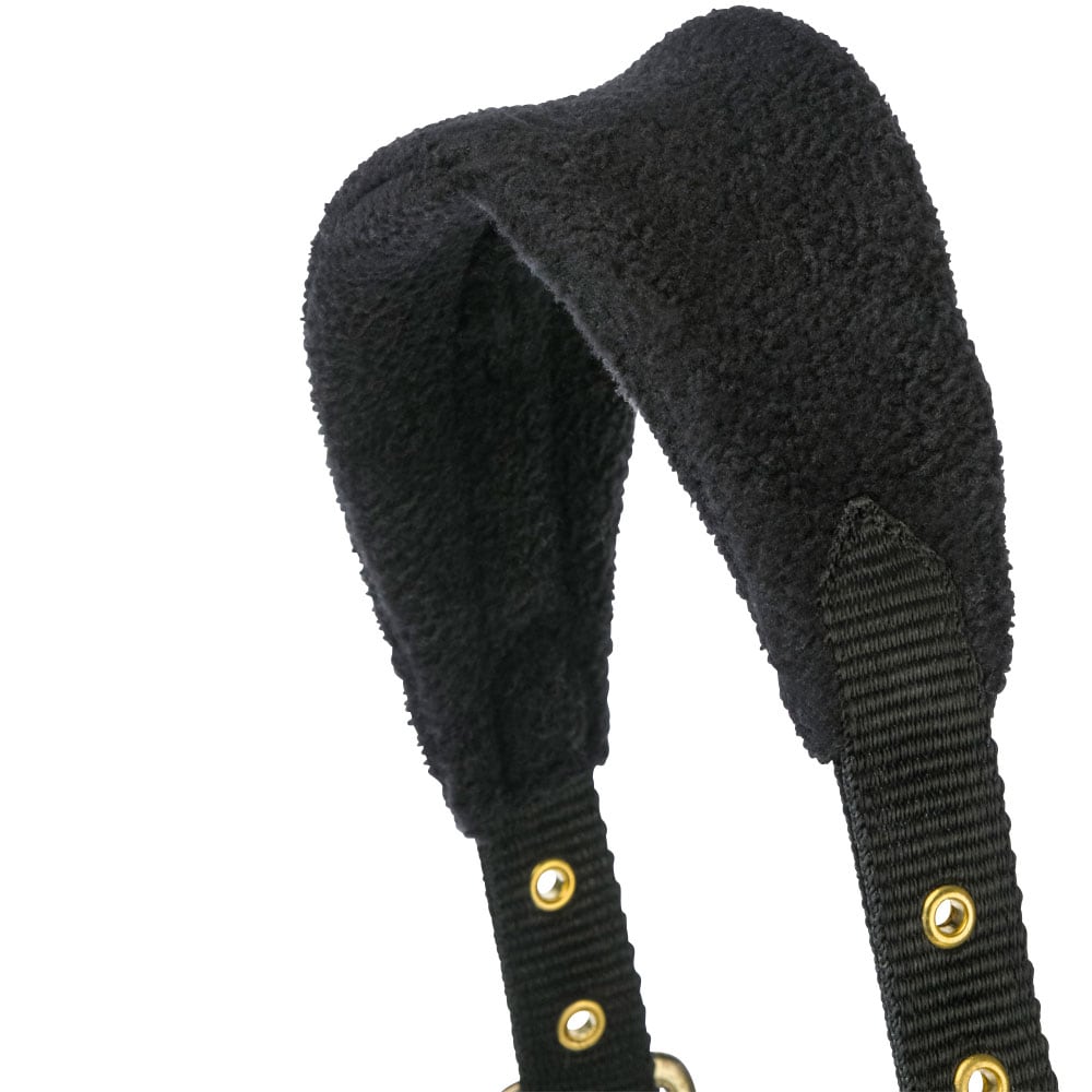 Halster gevoerd met zachte fleece aan de binnenzijde van de nek-, neus- en zijstukken. Verstelbaar aan beide zijden van de nek. Verstelbaar onder de neus.