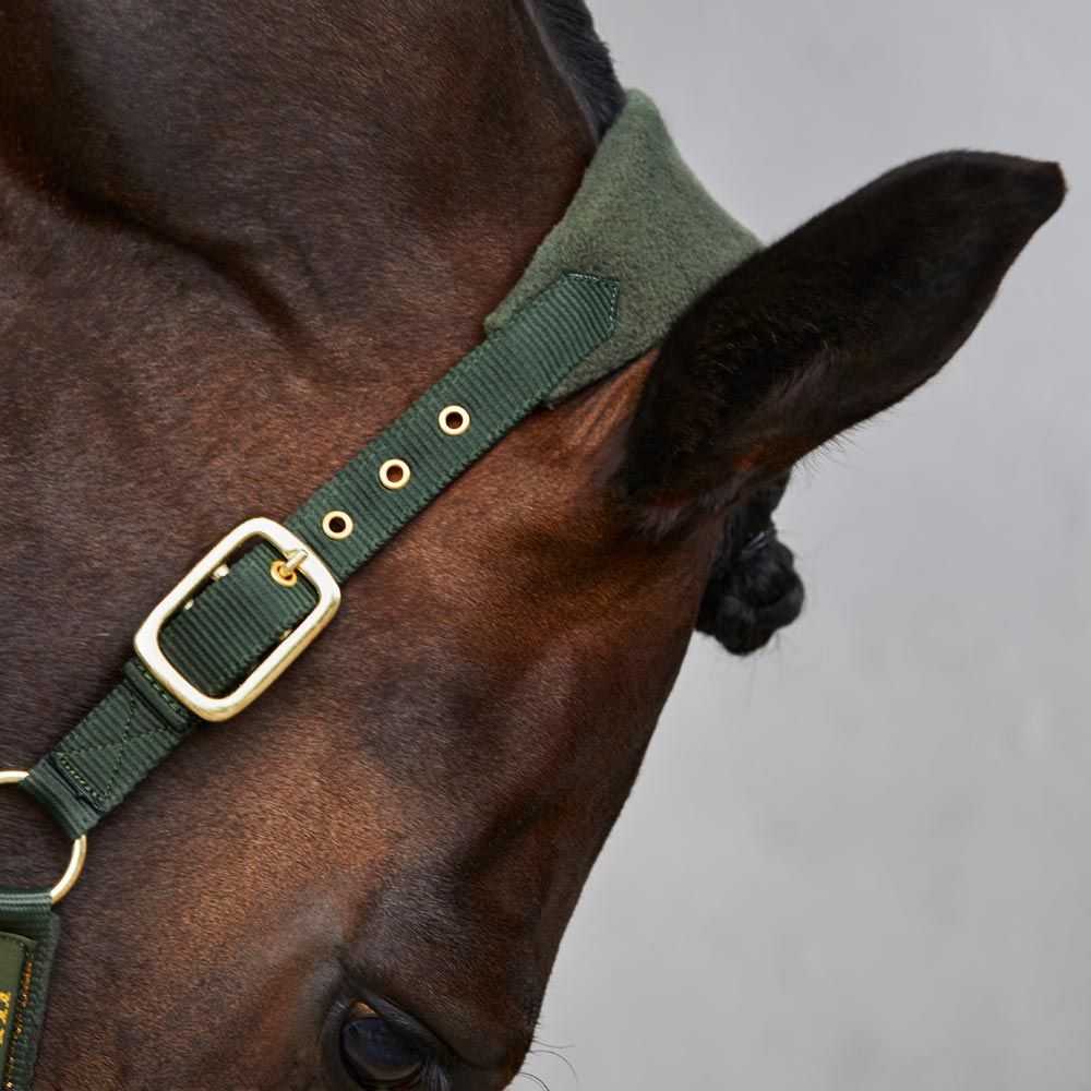 Halster gevoerd met zachte fleece aan de binnenzijde van de nek-, neus- en zijstukken. Verstelbaar aan beide zijden van de nek. Verstelbaar onder de neus.