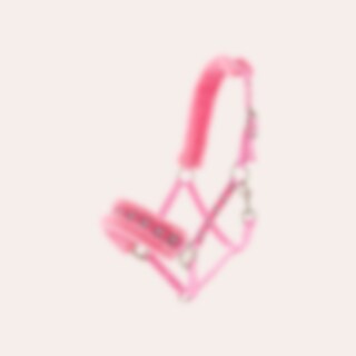 Halster gevoerd met zachte nertsfleece in de neus en nek. Decoratief lint met paarden.