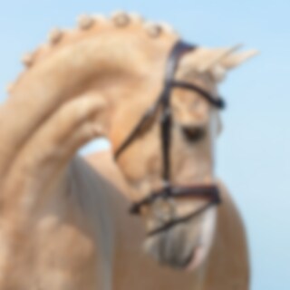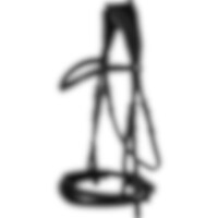 Gecombineerd neusriemhoofdstel met een 6 cm breed gevoerd kroonstuk, gevormd om een kanaal in het midden te vormen. Neusriem 5 cm breed met zachte voering. Gebogen gevoerde frontriem. Volledig afneembare Aachen-riem.