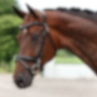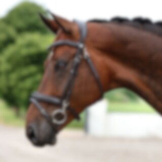 Gecombineerd neusriem hoofdstel van zacht leer. Gebogen, gevoerde frontriem met klittenbandsluiting, neusriem met zachte voering en afneembare Aachen-riem. Verstelbare, volledig afneembare keelriem en wangstukken met haken. Het kroonstuk is breed en gebog