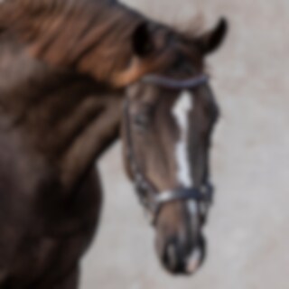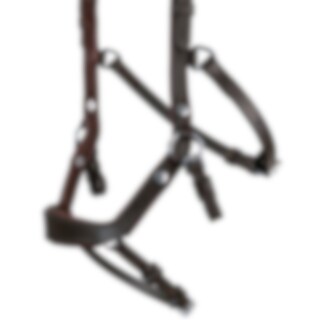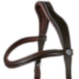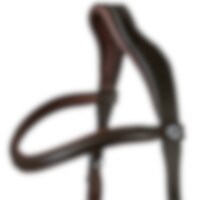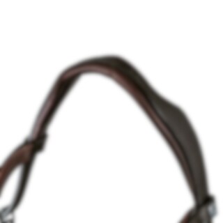 Hoofdstel met gebogen, zacht onderlegde neusriem ontworpen om druk op gevoelige gebieden te voorkomen. Anatomisch gevormd kroonstuk met een uitgesneden gedeelte in het midden. Het bit is bevestigd aan een verstelbare leren riem. Gebogen gevoerde frontriem. Zonder keelriem.