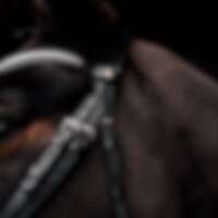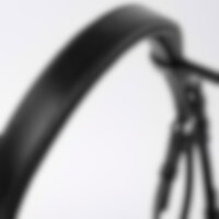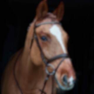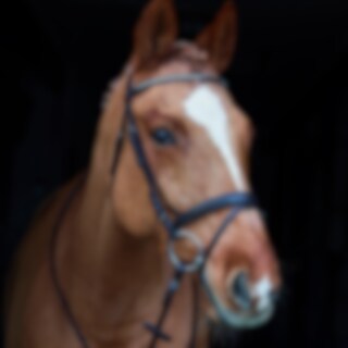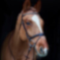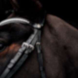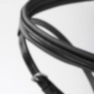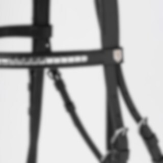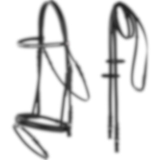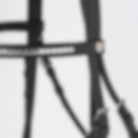 Zeer betaalbare Aachentrens met zacht gevoerd neushalster en nekstuk. Hoofdband met zilverkleurige klinknagels. Compleet met teugels van ribstof.