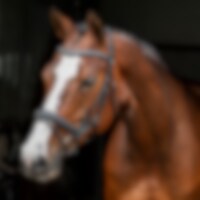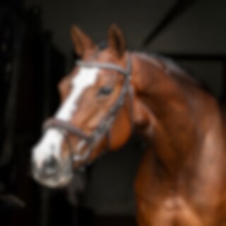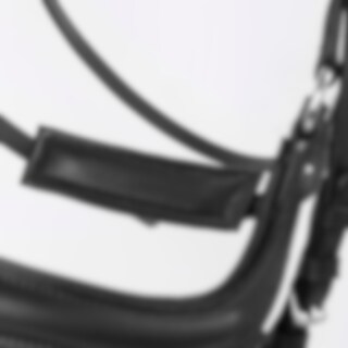 Aachen-trens met voorgevormde, gevoerde neusriem. Zit stevig dankzij de gesp op de onderkaak en de klassieke kaakriem. Breed, voorgevormd nekgedeelte met uitgesneden deel van extra zacht leer. Gebogen gevoerde hoofdband met witte steentjes.
