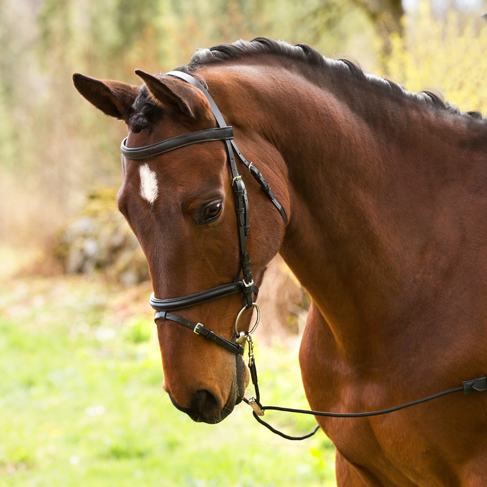 Slimme oplossing waardoor het paard aan beide kanten kan worden bewerkt, zonder weerstand van de andere kant. Zilveren sluitingen.
