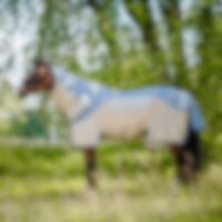 Lichtgewicht hybride deken van 600D polyester met polyestermesh aan de zijkanten. Houdt je paard droog over de lendenen. Een ideale combinatie bij onstabiel zomerweer waar regen en zon afwisselen. Houdt het paard droog maar warm genoeg. Houd er rekening m