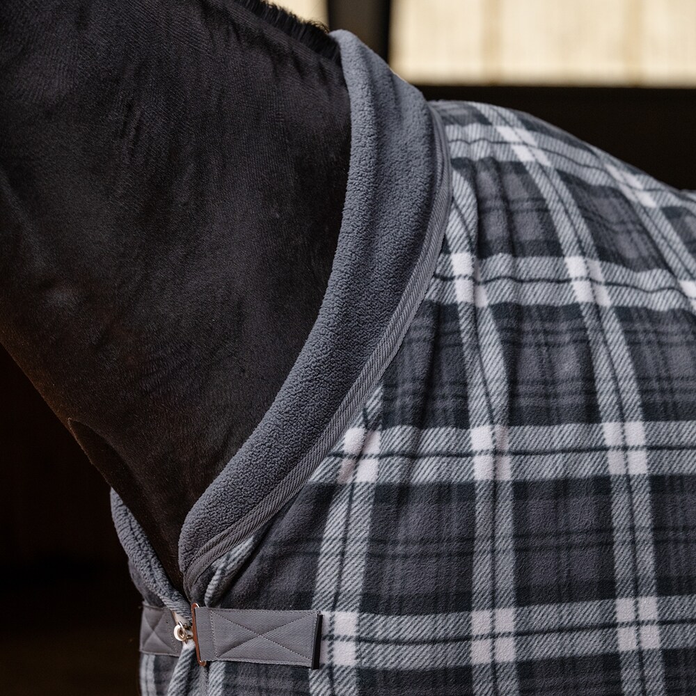 Deken van dikke, mooie tweelaagse fleece. De binnenzijde van teddystof vormt een luchtspleet die ervoor zorgt dat het paard warm blijft. De fleece absorbeert het vocht zodat een bezweet of vochtig paard droog wordt. Werkt prima in de stal tijdens koelere nachten of als transportdeken als het kouder wordt.