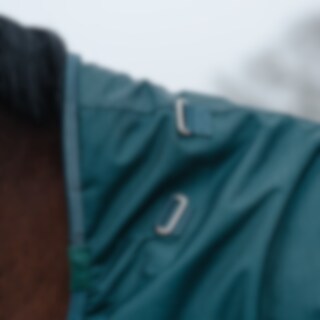 Regenhoes van gerecyclede materialen. Waterdichte buitenstof met 900D polyester ripstop en waterkolom van 5000 mm zorgt dat je paard droog blijft, zelfs bij erg slecht weer. De buitenstof is behandeld met PFAS-vrij Rudolf Eco Bionic waardoor het oppervlak