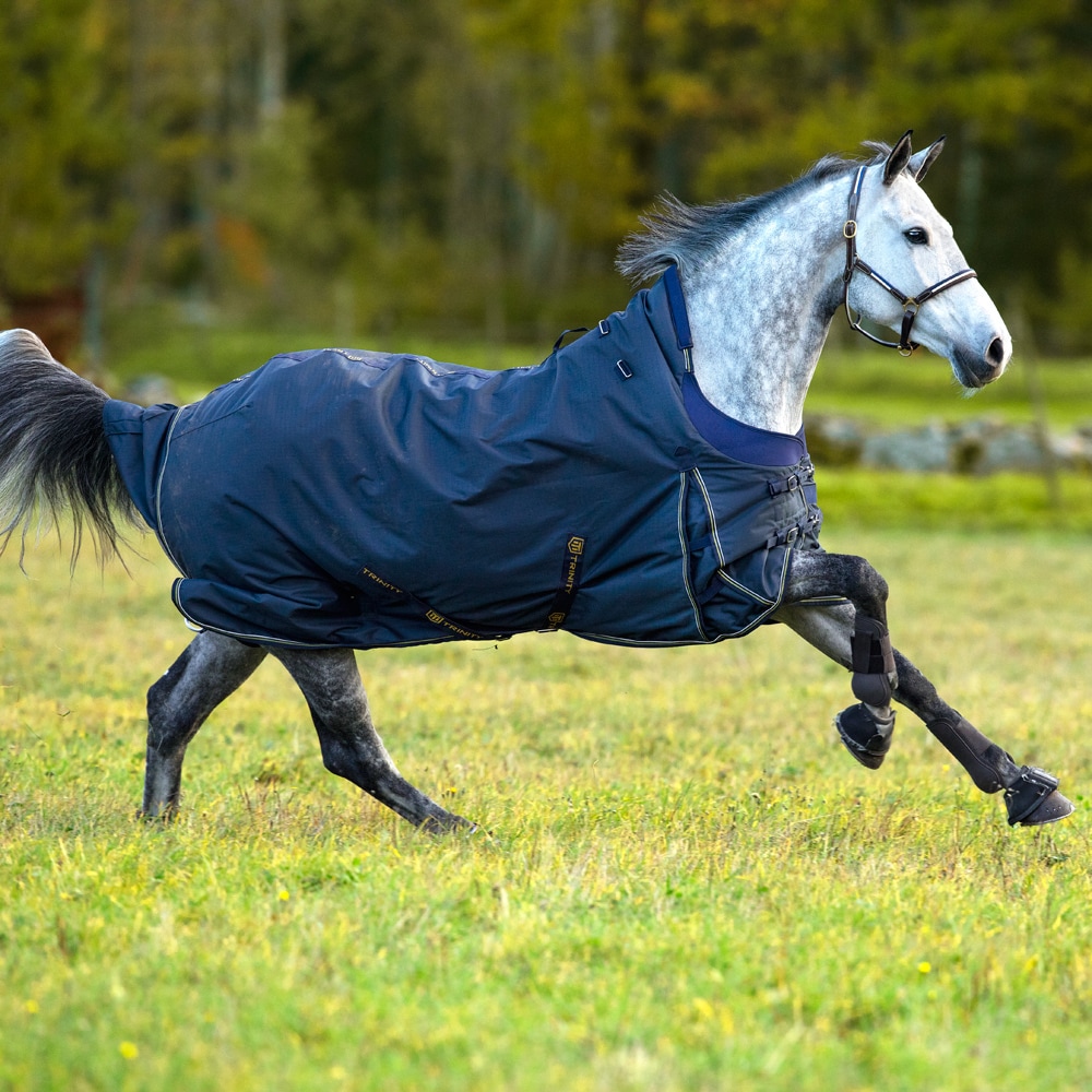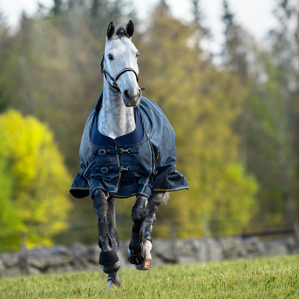 De ultieme uitrijdeken met praktische details. Middelhoge nek voor extra bescherming tegen de elementen, extra vulling over de schoft verhoogt de deken en voorkomt schuren. Neopreen inzetstuk bij de nek zorgt voor isolatie en houdt de deken op zijn plaats. Bijpassende nekdeken 690901 beschikbaar.