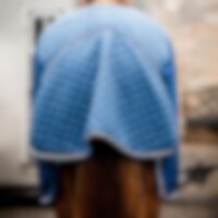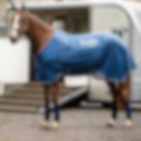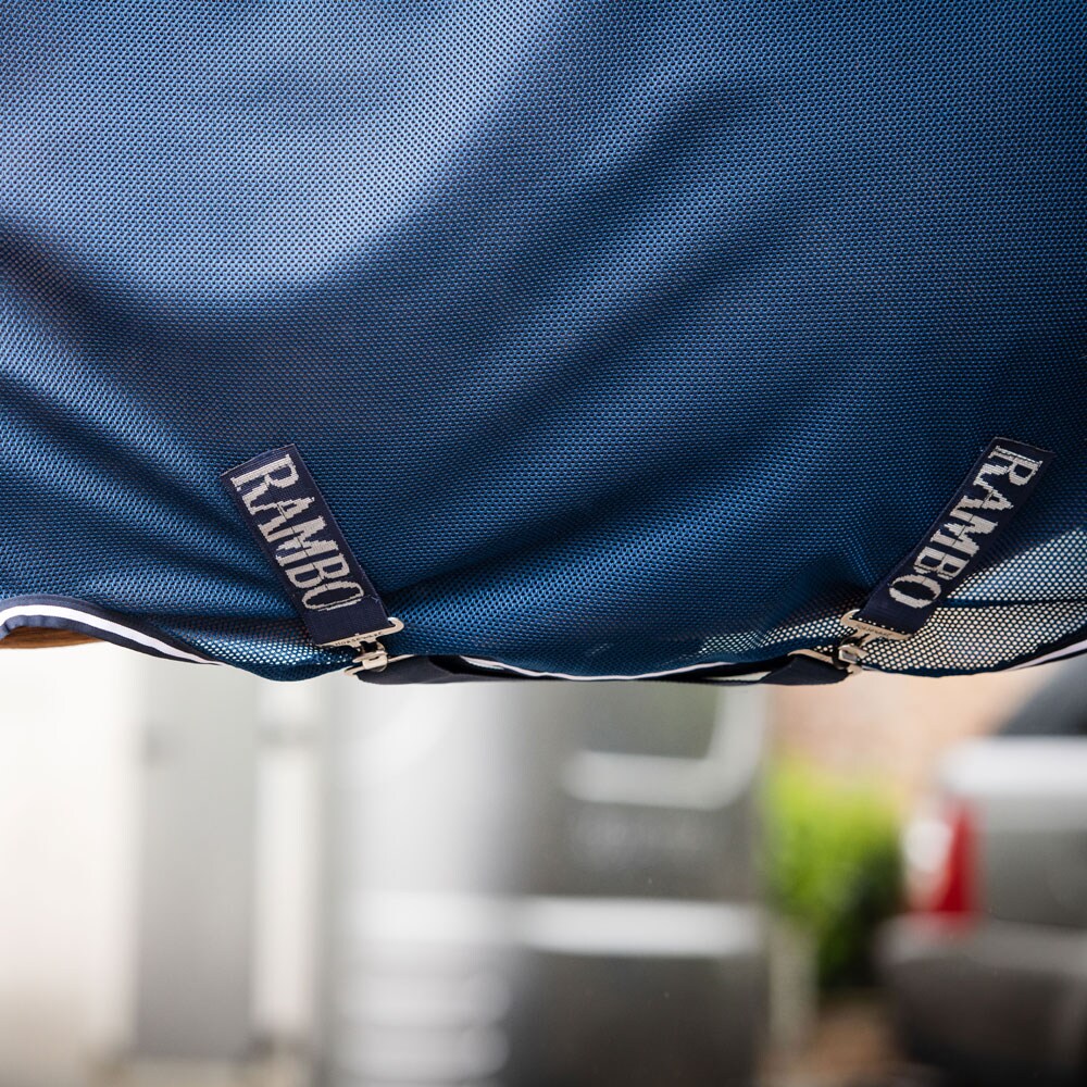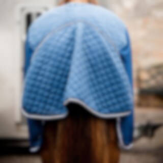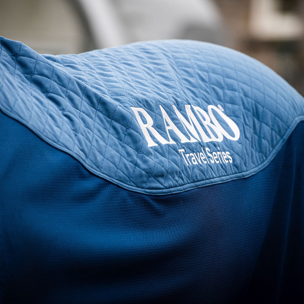 Nieuwe, innovatieve deken Rambo, speciaal ontwikkeld voor de behoeften van het paard tijdens het transport. Lange rugpartij met quiltpatroon die eindigt in een soort staartbescherming, waardoor de staart mooi blijft en schuren wordt tegengegaan. Rugdeel i