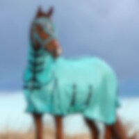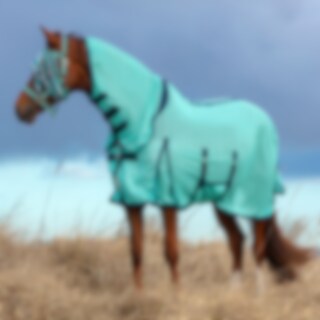Insectendeken van fijn polyester mesh. Lycra-paneel op de schoft voor meer mobiliteit, nylon voering op de kam en schouders om schuren te voorkomen. Vaste nek met klittenbandsluiting. Haltersluiting, grote staartbescherming, beschermend romppaneel.
