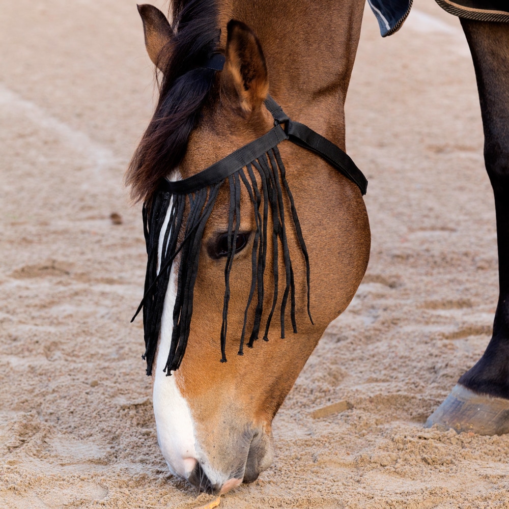 Flugpannband som kan användas utan grimma. Justerbar i käken med kardborreknäppning. Sitter bra tack vare elastisk käkrem.