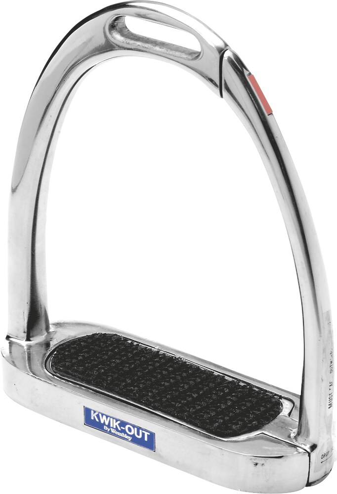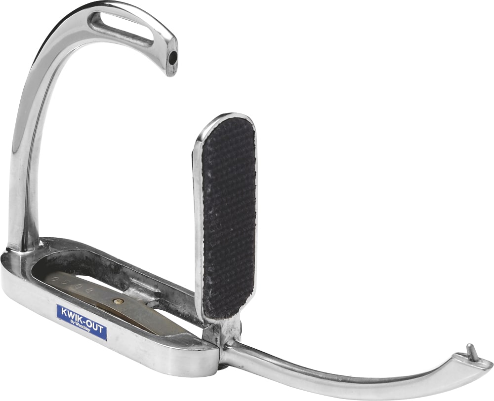 Stigbygeln öppnar sig då foten trycker mot sidan, vilket eliminerar risken att fastna och bli släpad efter hästen. Rostfritt stål.