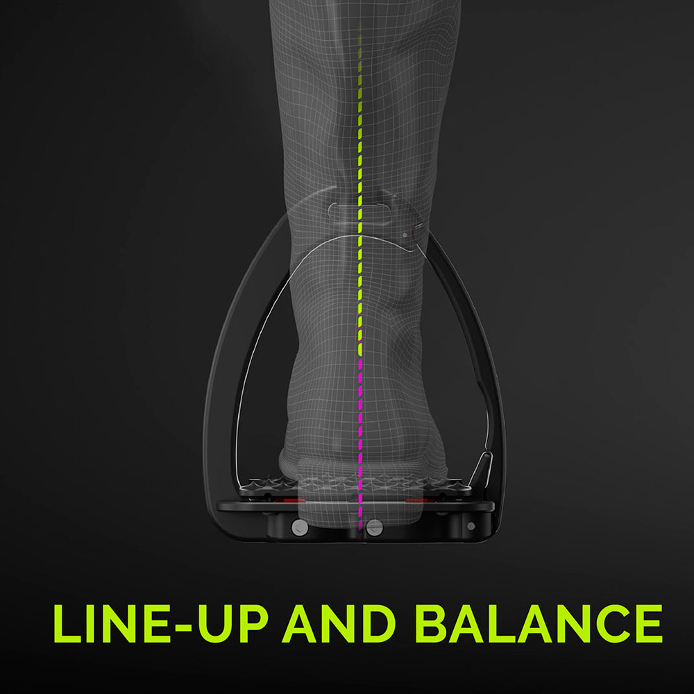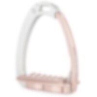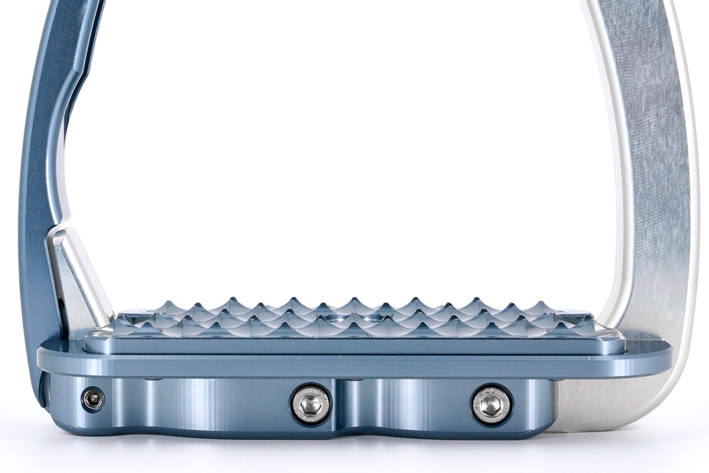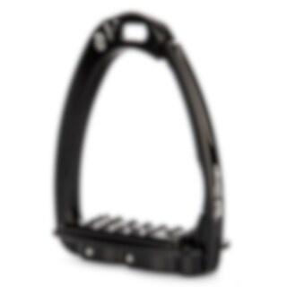 Stevige aluminium stijgbeugel. De buitenkant van de stijgbeugel opent onder belasting. Een krachtige veer brengt het terug naar zijn oorspronkelijke positie. Gewicht 570 gram. Gemaakt in Italië.