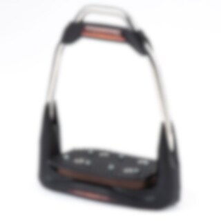 Freejump Air's is een stijgbeugel gemaakt van roestvrij staal dat op de bodem gemonteerd is op luchtkussens voor optimale schokabsorptie. Rechte vloer en rechte opening voor het stijgbeugelleer. Het kunststof gedeelte aan de binnenkant van de stijgbeugel is ontworpen om los te laten bij hoge belasting.