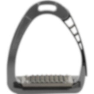Stijgbeugel met een kunststof boog aan de buitenkant die onderaan kan opengaan. Brede voetplaat van roestvrijstaal met pinnetjes voor goede grip. Geproduceerd in Italië. Gering gewicht, 418 gram.